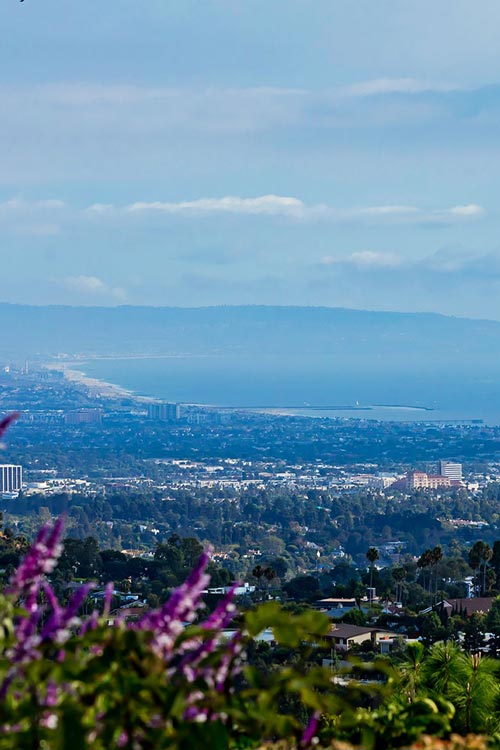 One of the best City & Ocean view properties on the entire Westside! Amazing Sunsets! Custom 2 story home on one of the best streets in Brentwood Hills. Chef's kitchen w/granite counters & backsplash. Built-in double ovens, 6 burner gas cooktop, 2 dishwashers, custom hood & Sub-zero refrigerator & microwave. Walk-in pantry, U-line wine cooler & adj. family room w/custom cabinet for TV & surround sound. Recessed lighting throughout. Open floor plan formal dining room, LR w/vaulted ceiling & 2 sided fireplace w/adjacent den w/skylight. Covered patio outside family room. 2 add'l patios. Beautifully landscaped front & rear yards & deck w/bench seating & gas fire pit. Spacious master suite w/vaulted ceiling, cedar lined walk-in closet, dual sinks w/marble countertops, water closet w/bidet, Jacuzzi tub, lg shower w/bench, lots of built-ins & 2 addtl upstairs bedrooms & guest bedroom down stairs w/en suite bath. House is completely filled w/natural light. 3 car garage. Owned security system.